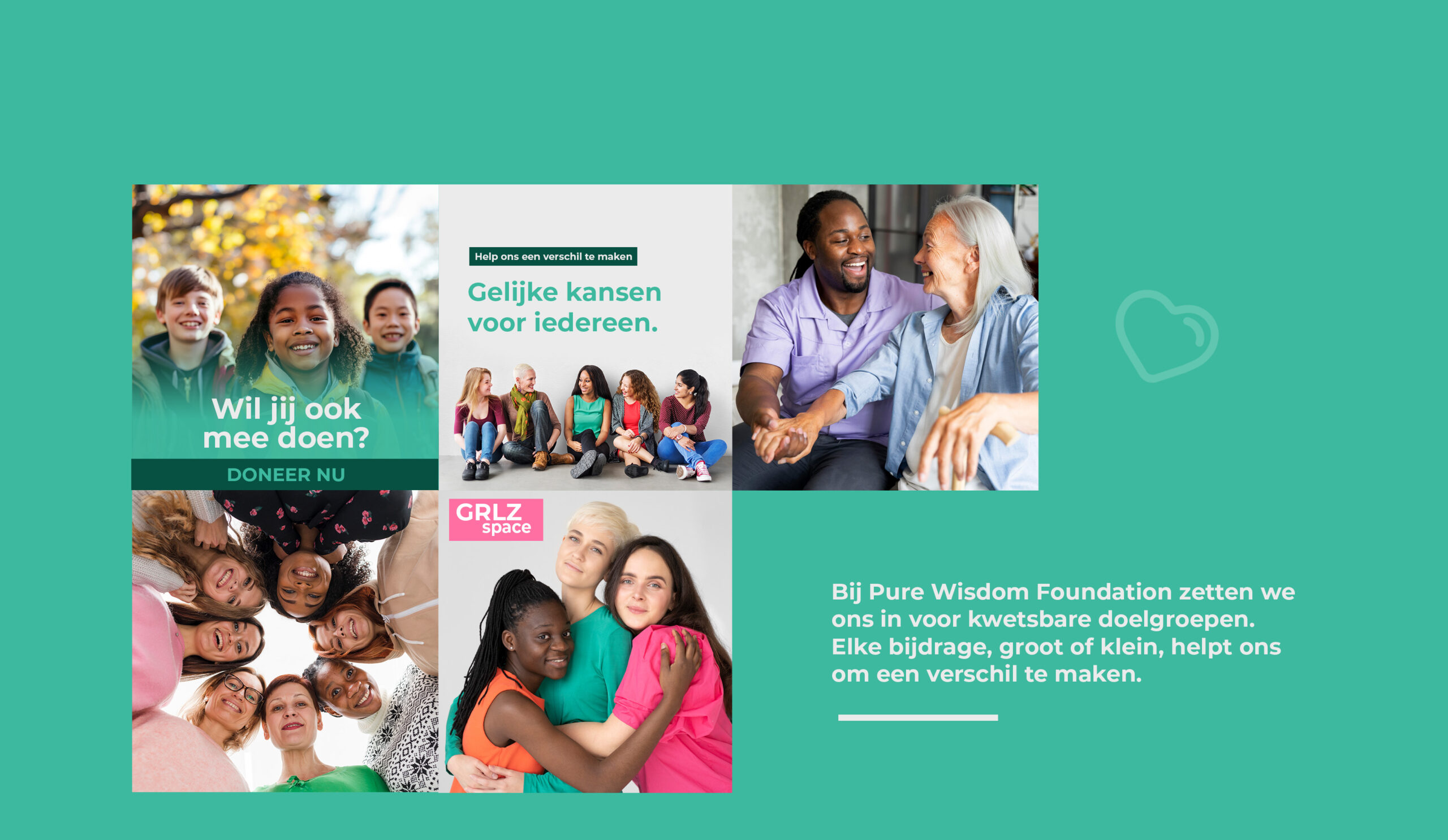 PWF ondersteund specifieke kwetsbare groepen zoals kinderen en jongeren die in armoede opgroeien, tienermoeders en ouderen die geen gezin of netwerk om zich heen hebben. Ook richten we ons bij kinderen en jongeren op het versterken en waarmaken van de eigen krachten en talenten.